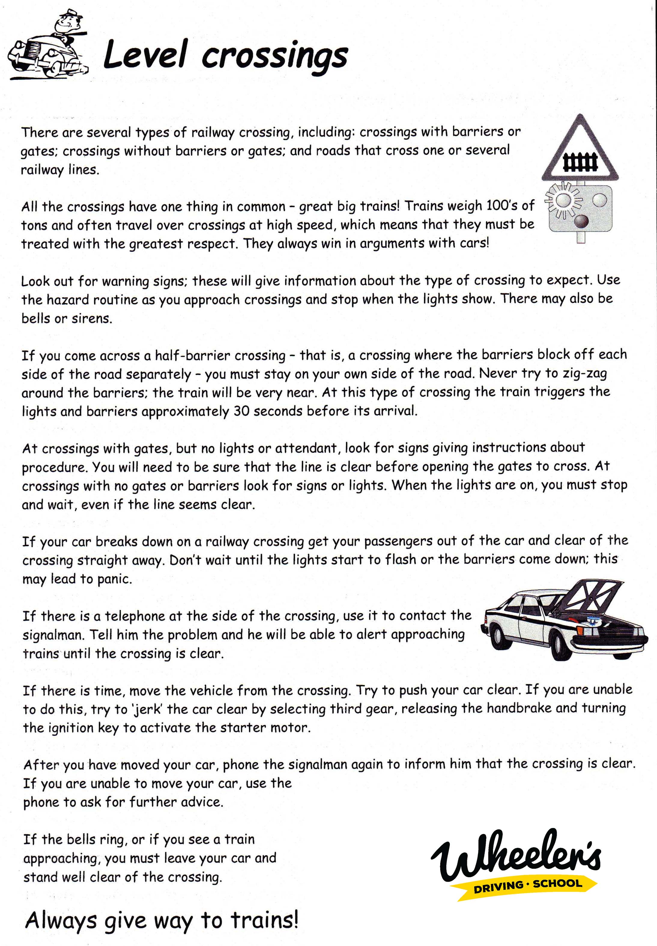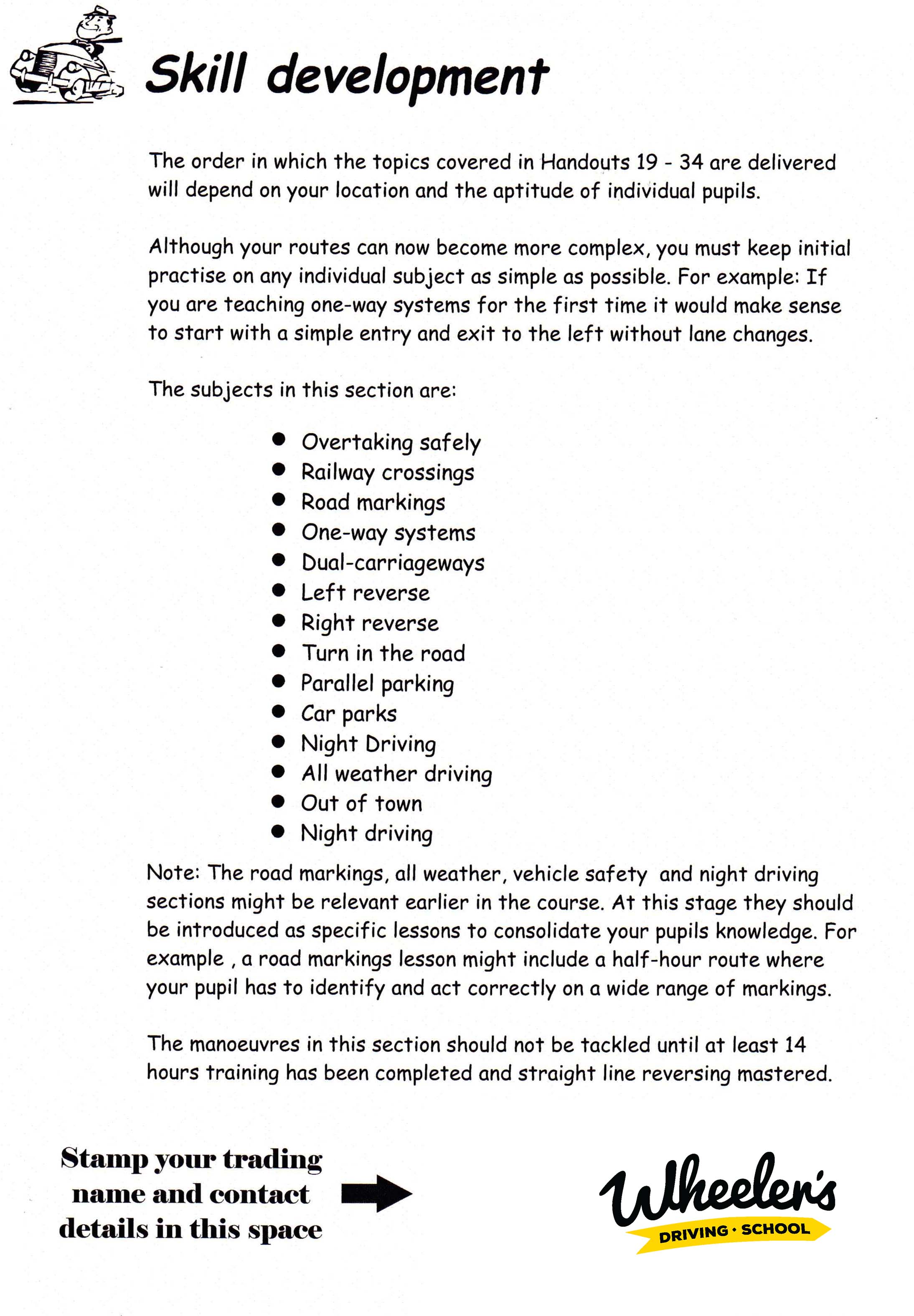 We provide handy practical handouts for you to revise and put to practice during lessons.